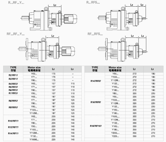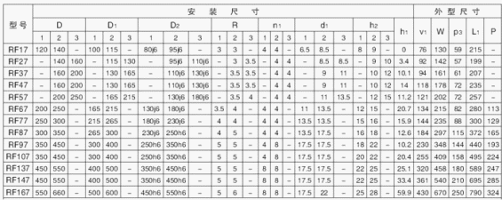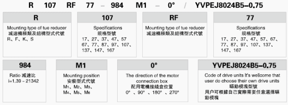 R…F:底腳法蘭安裝 RM: 法蘭安裝帶加長(zhǎng)軸承箱